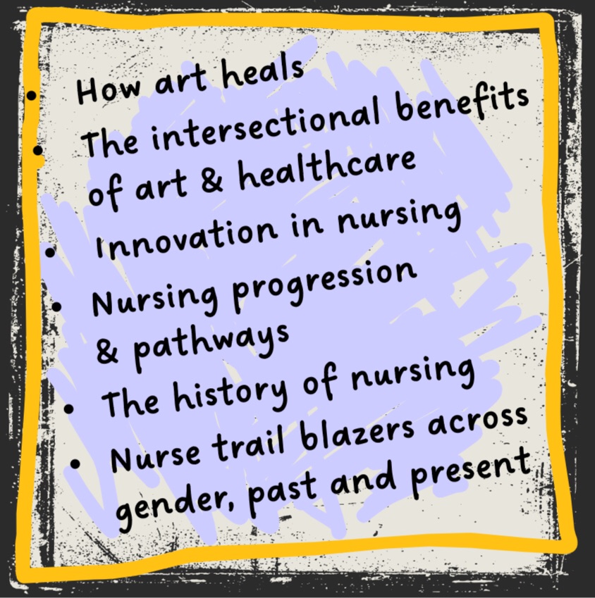 To empower nurse-led creativity, drive improvement through art, and amplify the creative voice of UK nursing.